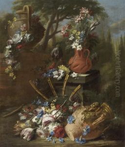 Stillleben Mit Fruchten, Gefasen Und Serviette