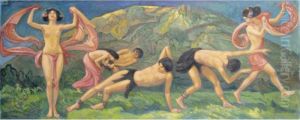 Bring the timeless beauty of Rudolf Riemerschmid's Tanzende Kinder into your home with a handmade oil painting reproduction. Carefully recreated on canvas by skilled artists using traditional techniques, this piece captures the delicate brushwork, subtle light, and vibrant color of the original masterpiece. With museum-level quality and rich texture, it brings elegance and artistic depth to any space. Enjoy free shipping and make this masterpiece a part of your personal collection.