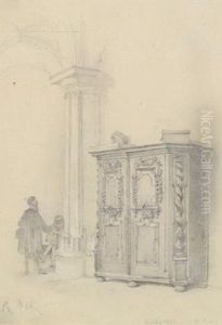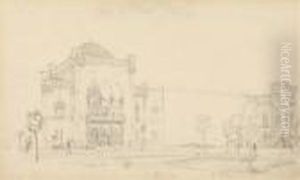 "the Pantheon And The Piazza Della Rotondo In Rome" Watercolour On Paper