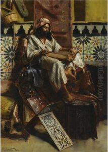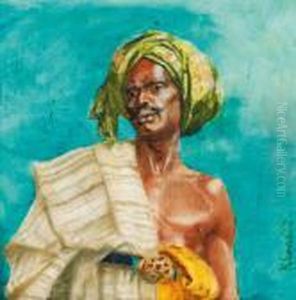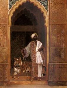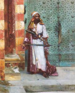 Kniestuck Eines In Reich Verzierte Orientalische Kleidunggewandeten Mannes Mit Weisem Turban, Seine Pistole Haltend