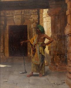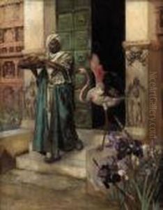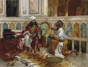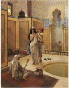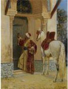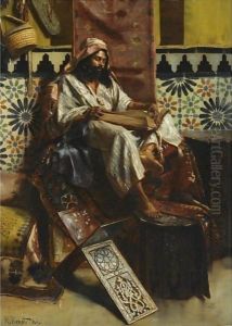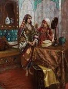 Femme Orientale Et Enfant Huile Surpanneau Signee Vers Le Bas A Gauche R. Ernst 23