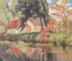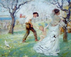 A Naked Woman Bathing With Swans, A Classical Temple Beyond