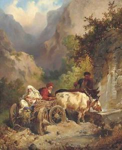 Peasants venerating an icon at a roadside shrine