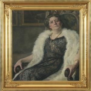 A Young Girl In A Pink Dress With A Parasol In The Garden, Presumably In Dragor