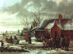 Barn Interior With A Cobbler And A Maid Collecting Water
