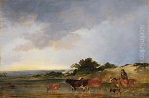 A Wooded Landscape With Peasants In A Courtyard Near A Farm With A Stream In The Foreground