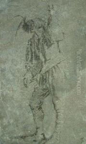 Study Of A Labourer/musician Carrying An Item On His Back