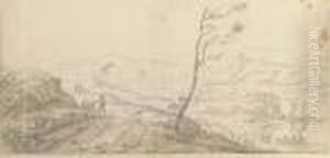 A River Landscape With Travellers Conversing On A Path, Horsemen Nearby