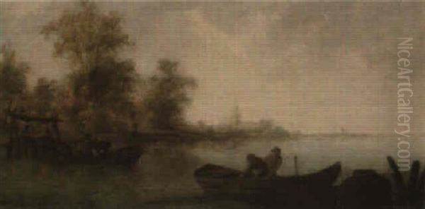 River Landscape With Fishermen At Their Nets