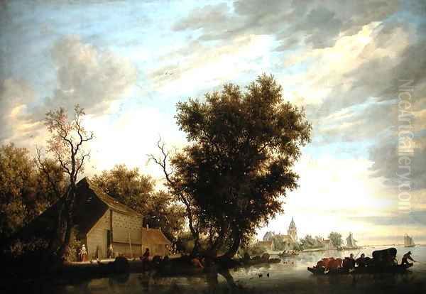 Bring the timeless beauty of Salomon van Ruysdael's River Scene with a Ferry Boat into your home with a handmade oil painting reproduction. Carefully recreated on canvas by skilled artists using traditional techniques, this piece captures the delicate brushwork, subtle light, and vibrant color of the original masterpiece. With museum-level quality and rich texture, it brings elegance and artistic depth to any space. Enjoy free shipping and make this masterpiece a part of your personal collection.