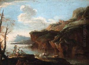 An Italian coastal landscape with fisherfolk