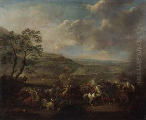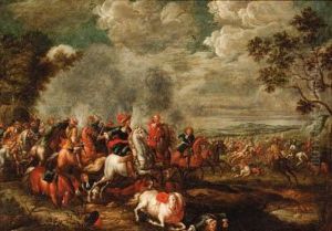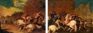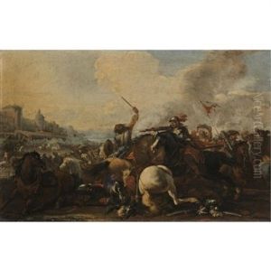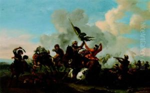 A Cavalry Battle Oil Painting by Salvator Rosa