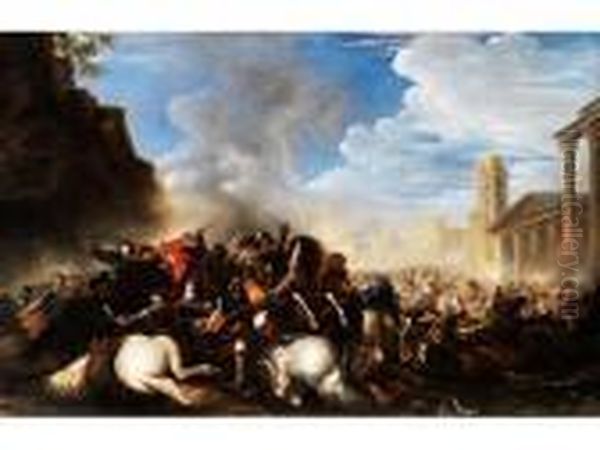 Bring the timeless beauty of Salvator Rosa's Reiterschlacht Vor Stadt Mit Antiken Tempelgebauden Undrundturm into your home with a handmade oil painting reproduction. Carefully recreated on canvas by skilled artists using traditional techniques, this piece captures the delicate brushwork, subtle light, and vibrant color of the original masterpiece. With museum-level quality and rich texture, it brings elegance and artistic depth to any space. Enjoy free shipping and make this masterpiece a part of your personal collection.