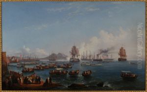 Salvatore Fergola was an Italian painter, born in Naples in 1799. He is known for his landscapes and architectural paintings that reflect the Neapolitan culture and surroundings of his time. Fergola initially trained under his father, the painter Gaetano Fergola, and later at the Naples Academy of Fine Arts. His talent was recognized early on, and he was commissioned to create works for the Bourbon court of Naples.