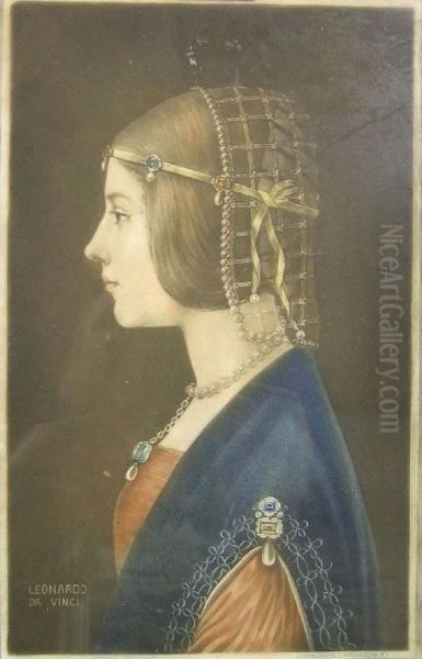 Mezzotint With Printedcolour Of Leonardo Da Vinci's 'beatrice D'este