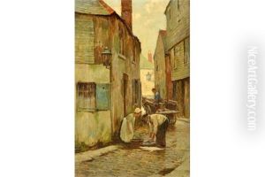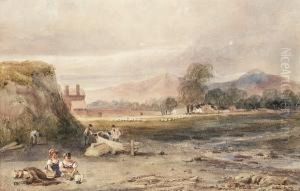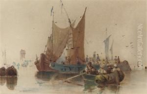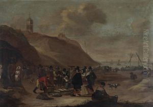 A Coastal Hamlet With Figures Selling Fish On The Foreshore