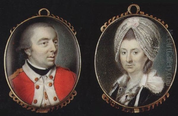 Portrait Of An Officer With Powdered Hair En Queue, Wears Scarlet Coat With White Facings, Gold Epaulette And Buttons, White Waistcoat And Black Stock