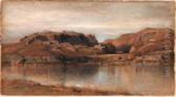 River Landscape Oil Painting by Samuel Colman