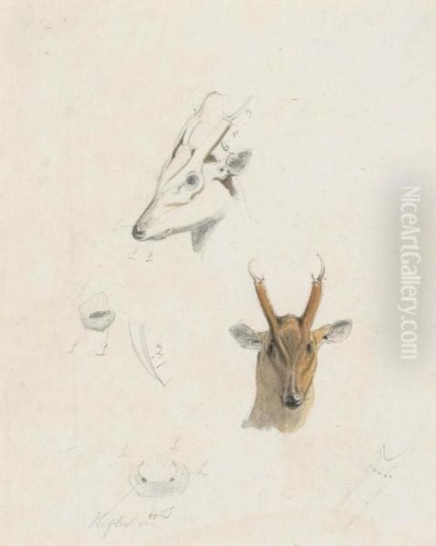 Studies Of The Head, Nose And Antlers Of A Musk Deer Of Ceylon