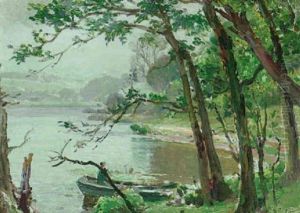 Fruhlingslandschaft Mit Birkengesaumtem Weg