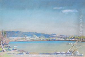 River Scene With Town Beyond
