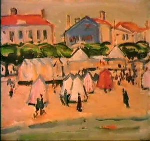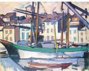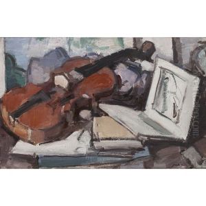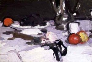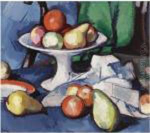 Dish With Apples, Ginger Jar, Brown Crock, Bottle, And Chair