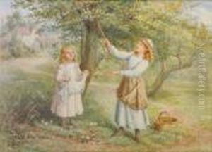 "picking Apples", Two Girls In An Orchard