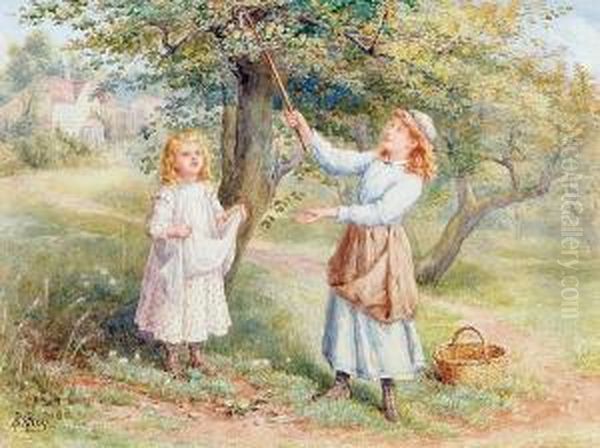 "picking Apples", Two Girls In An Orchard