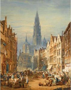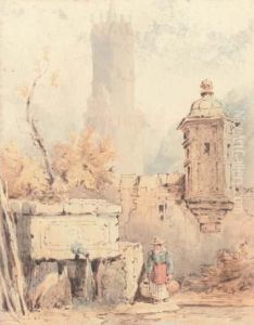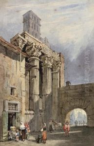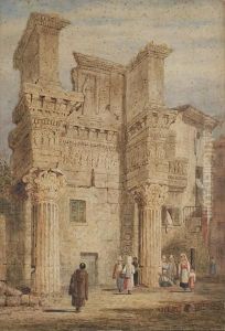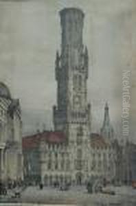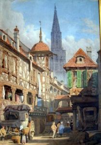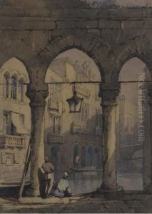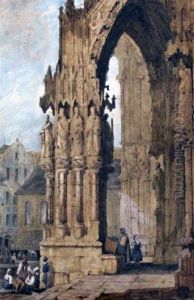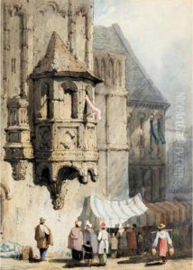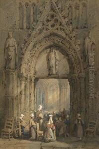 Figures At The Cathedral Portal, Ulm; Street Scene, Ulm, A Pair