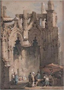 Figures At A Market Before A Continental Cathedral