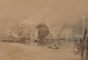 An East Indiaman Moored, Small Boats Alongside, Other Boats Further Off