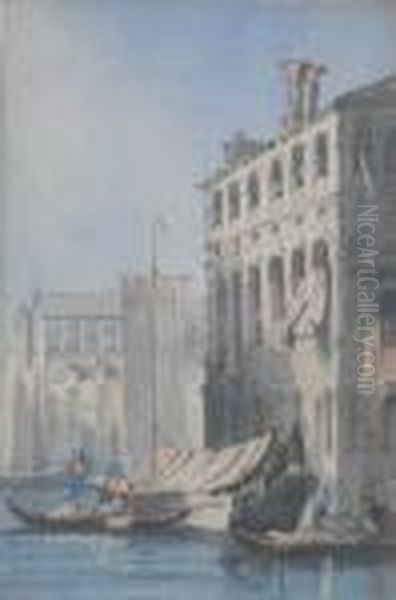 Gondolas And A Barge Before A Palazzo, Venice