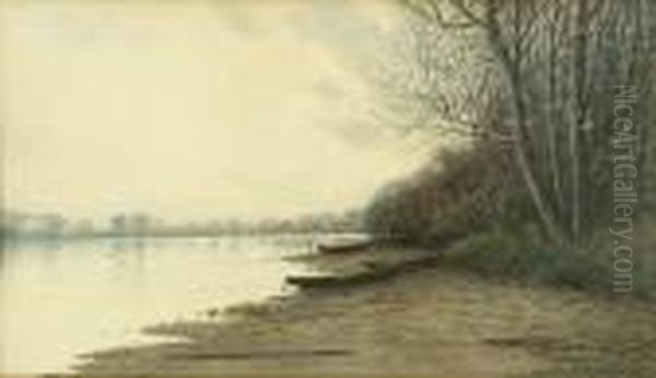 Canoes On The Shore. Signed Lower Right S.r. Chaffee.
