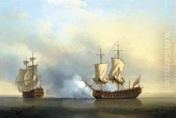 Bring the timeless beauty of Samuel Scott's The Historic Encounter Between H.m.s. Lion And Two French Vessels, One Of Which Was Carrying 'bonnie Prince Charlie' En Route To Scotland To Kindle The Second Jacobite Rebellion, 9 into your home with a handmade oil painting reproduction. Carefully recreated on canvas by skilled artists using traditional techniques, this piece captures the delicate brushwork, subtle light, and vibrant color of the original masterpiece. With museum-level quality and rich texture, it brings elegance and artistic depth to any space. Enjoy free shipping and make this masterpiece a part of your personal collection.