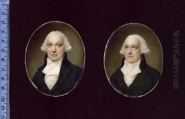 Portrait Of A Gentleman Wearing Green Coat With Brass Buttons, White Waistcoat, Shirt And Stock, His Hair Powdered (2 Portraits Of The Same Gentleman)