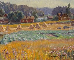 Throughout his career, Salokivi was known for his ability to capture light and atmosphere in his paintings, a skill that made his landscapes particularly evocative. His portraits, on the other hand, were appreciated for their sensitivity and psychological depth. He often depicted scenes of Finnish nature and rural life, conveying a sense of peace and serenity.