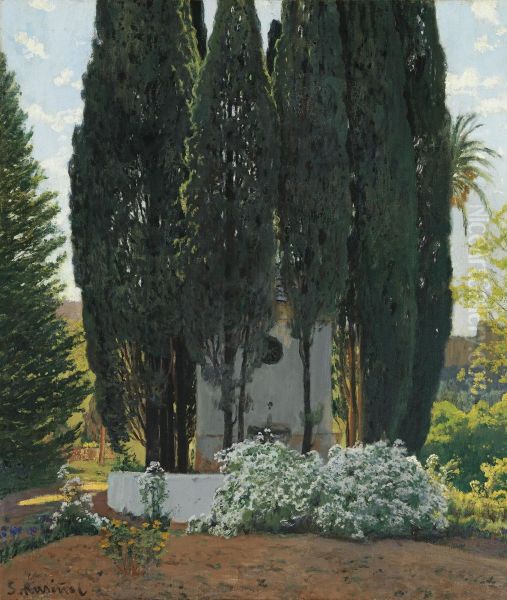Bring the timeless beauty of Santiago Rusinol i Prats's La Fuente De Los Cipreses (the Cypress Fountain) into your home with a handmade oil painting reproduction. Carefully recreated on canvas by skilled artists using traditional techniques, this piece captures the delicate brushwork, subtle light, and vibrant color of the original masterpiece. With museum-level quality and rich texture, it brings elegance and artistic depth to any space. Enjoy free shipping and make this masterpiece a part of your personal collection.