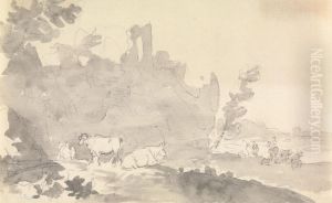 Landscape with Cattle and Figures in Foreground