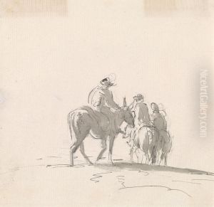 Three Figures Mounted on Mules