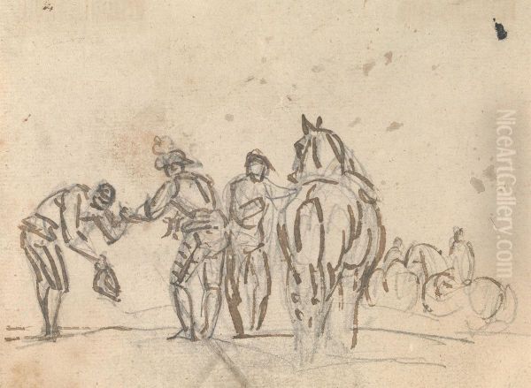Three Figures beside a Horse