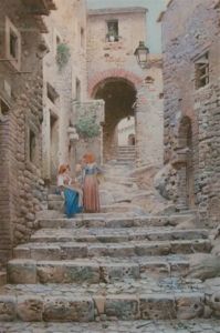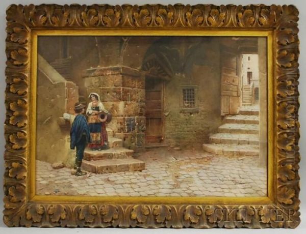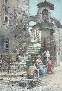Bring the timeless beauty of Scipione Simoni's Village Scene With Couple On The Stairs In Subiaco into your home with a handmade oil painting reproduction. Carefully recreated on canvas by skilled artists using traditional techniques, this piece captures the delicate brushwork, subtle light, and vibrant color of the original masterpiece. With museum-level quality and rich texture, it brings elegance and artistic depth to any space. Enjoy free shipping and make this masterpiece a part of your personal collection.