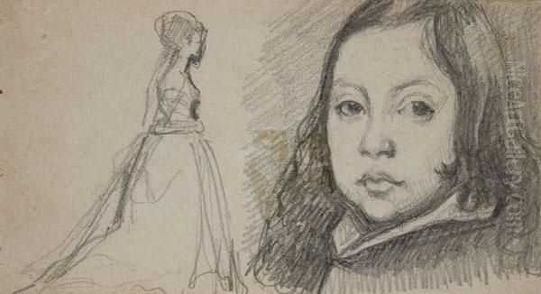 Schizzo Di Donna E Ritratto Di Bambino