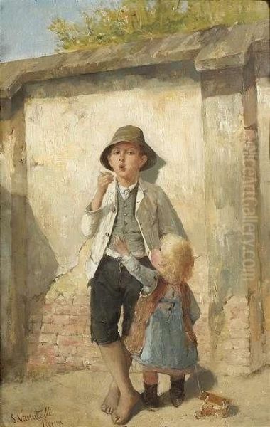 Bring the timeless beauty of Scipione Vannutelli's The First Cigarette. A Smoking Boy With His Little Sister into your home with a handmade oil painting reproduction. Carefully recreated on canvas by skilled artists using traditional techniques, this piece captures the delicate brushwork, subtle light, and vibrant color of the original masterpiece. With museum-level quality and rich texture, it brings elegance and artistic depth to any space. Enjoy free shipping and make this masterpiece a part of your personal collection.