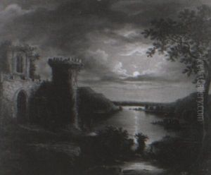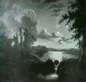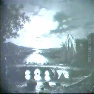 A Moonlit Wooded River Landscape With A Ruined Abbey