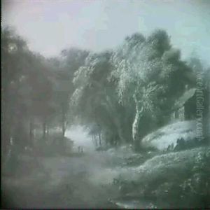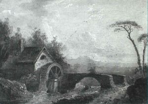 Figures On A Bridge By A Watermill, A Landscape Beyond