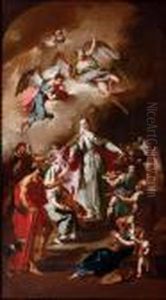 A Woman And Her Child Presented By Franciscan Saints To The Infantchrist