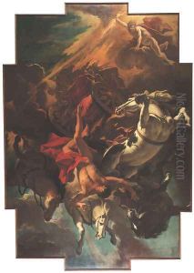 Design For A Frontispiece, With Minerva, Putti Holding A Shield, Fame And Time Around A Bust, And A Putto Above Holding A Circular Glass Marked With A Cross Which Directs Beams Of Light Onto The Bust