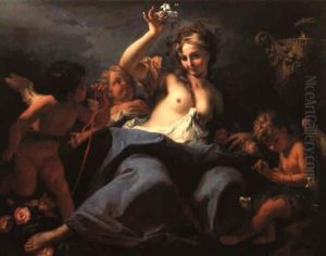 A Young Man Wearing A Floral Wreath With A Basket Of Flowers, Holding A Heart