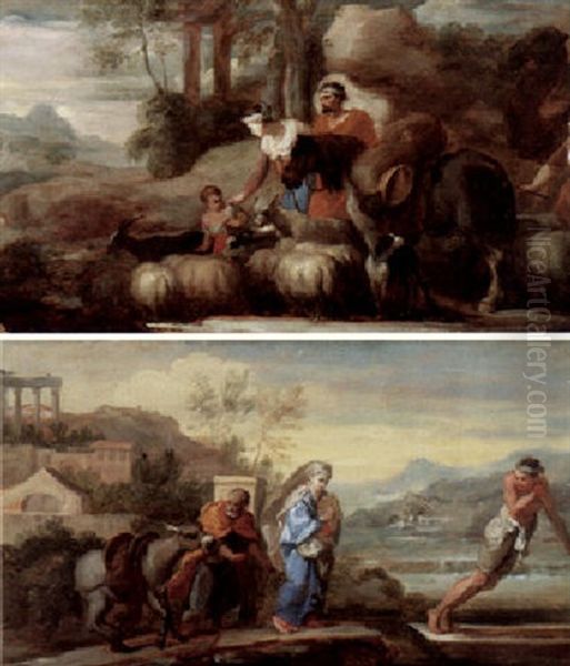The Flight Into Egypt Oil Painting by Sebastien Bourdon