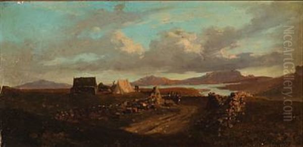 Mountain Landscape With Travelers